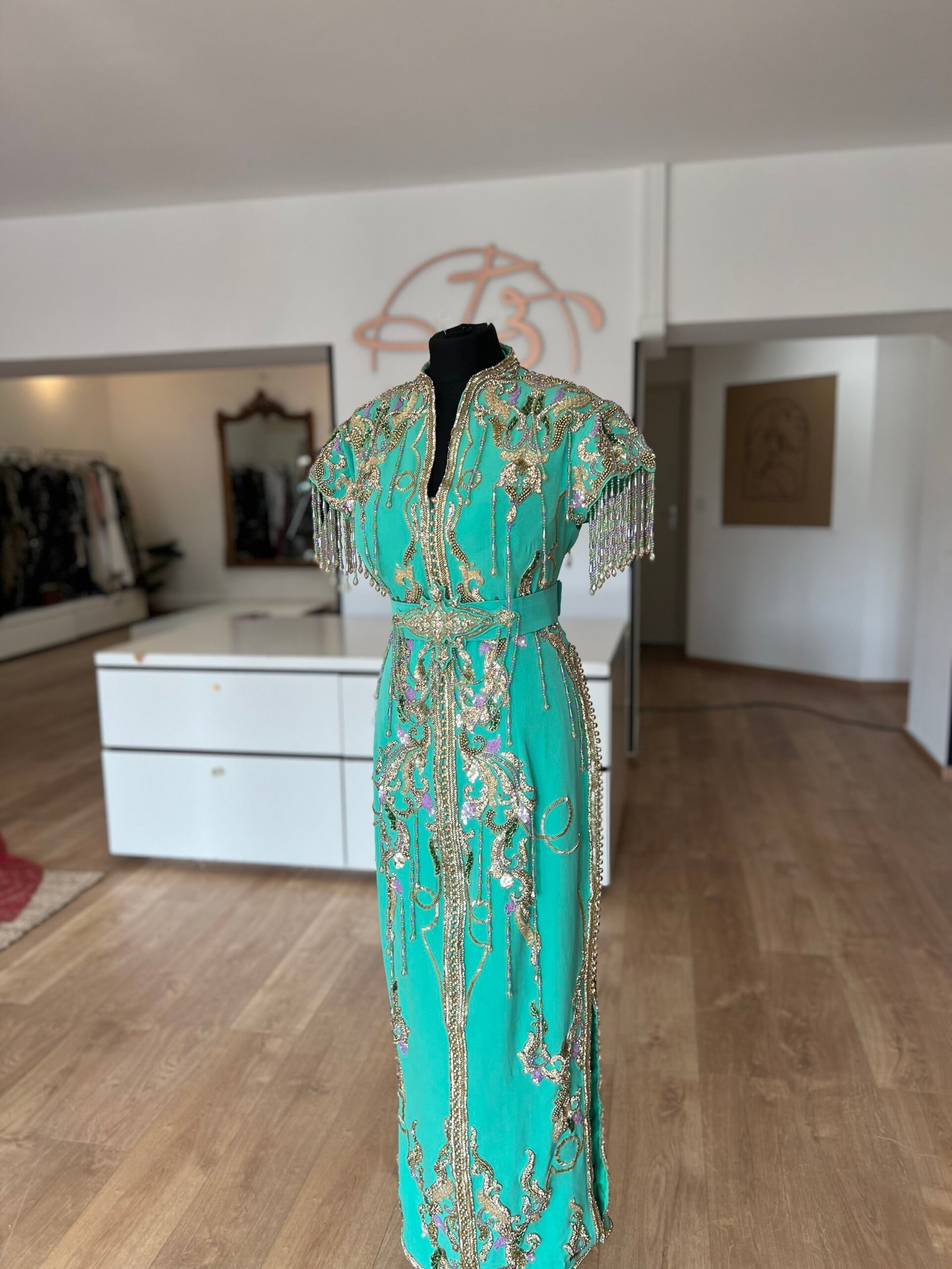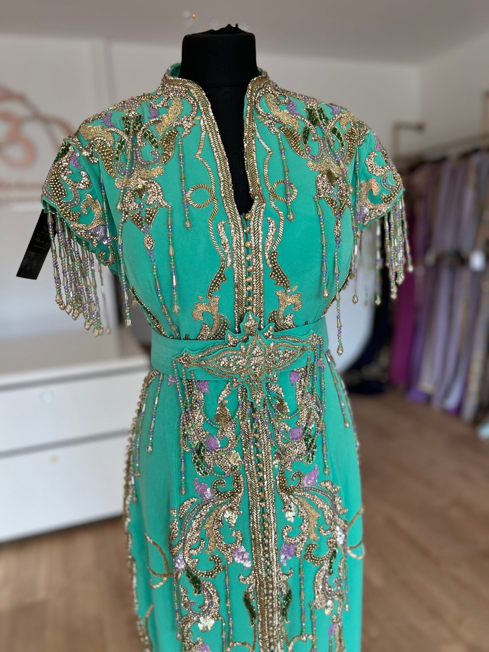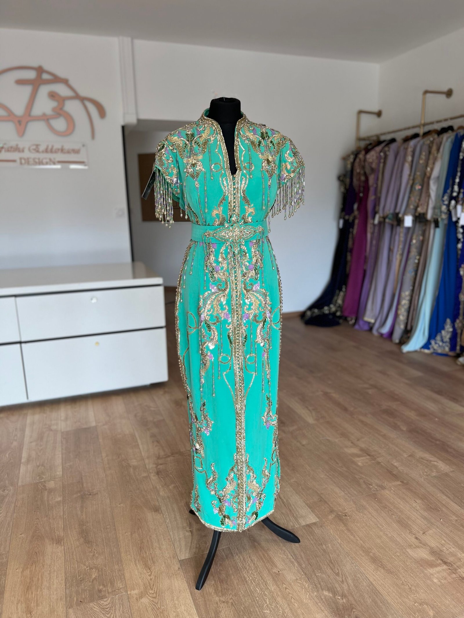 Caftan sirène couleur vert minthe