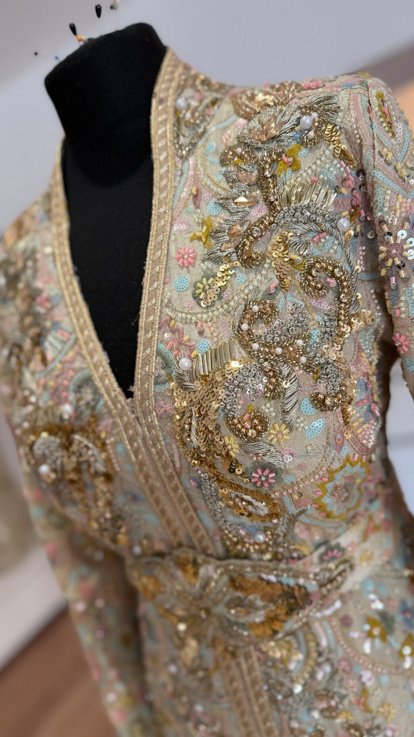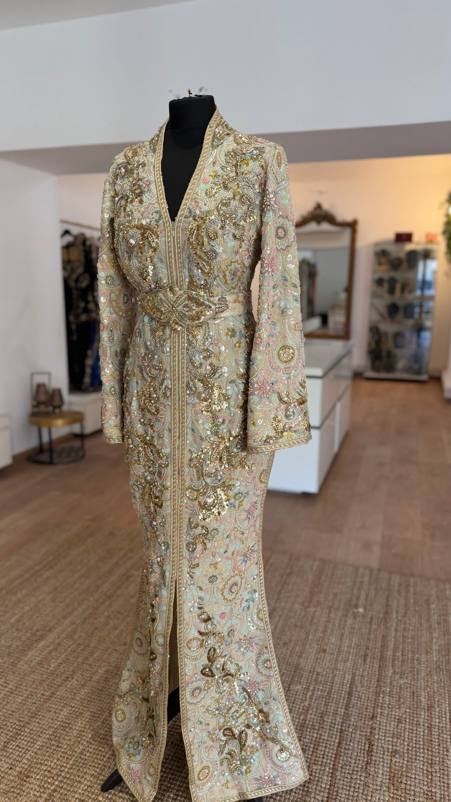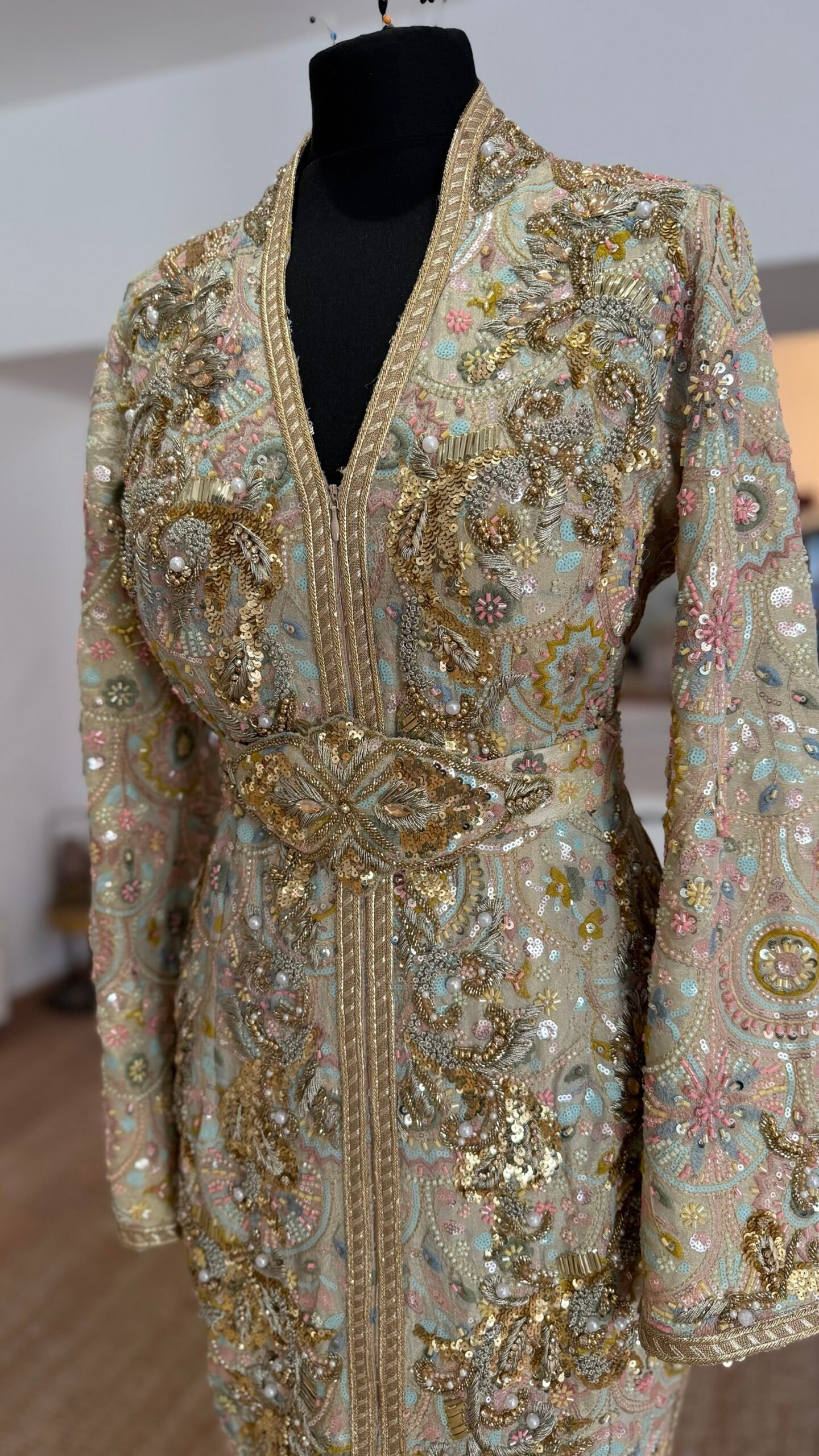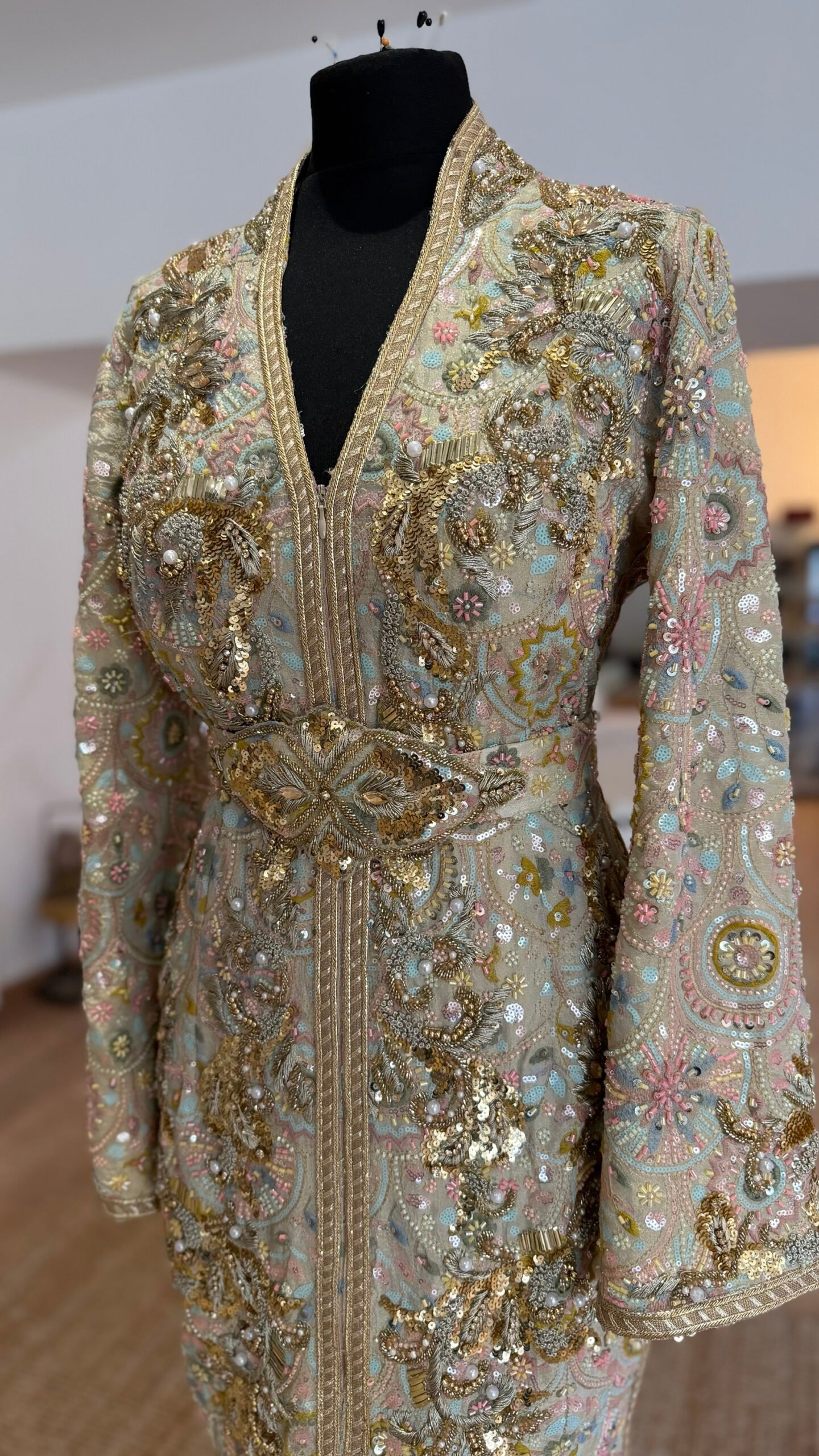 Caftan tissus perlé et brodé